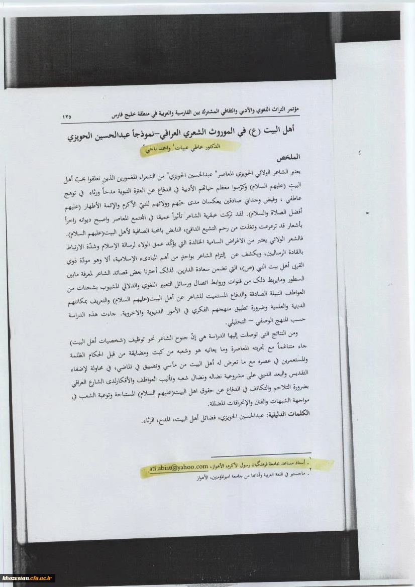 چکیده مقالات دکتر عاطی عبیات