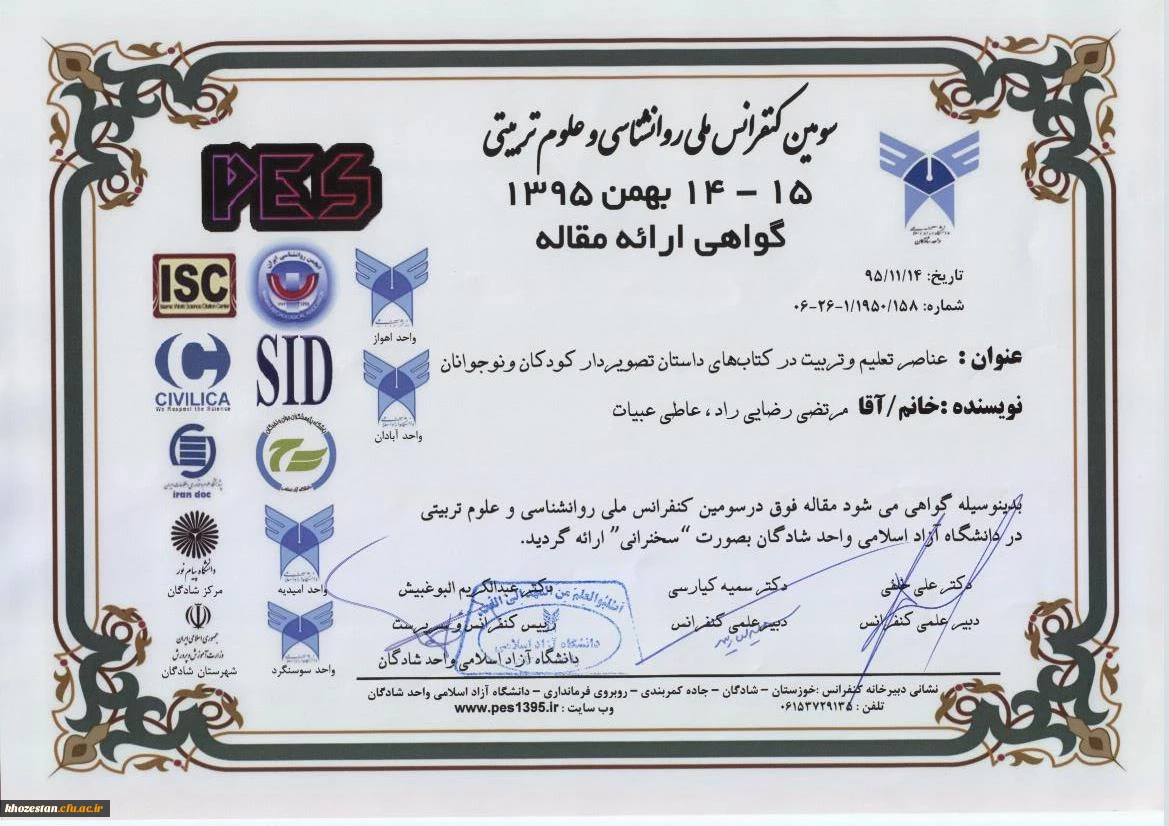 امتیاز دهید : شرکت در سومین کنفرانس ملی روانشناسی و علوم تربیتی دکتر عاطی عبیات چهارشنبه 24 خرداد 1396 ساعت 12:14