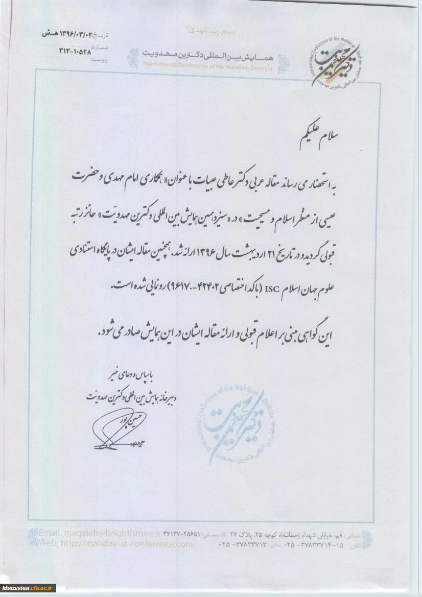 مقاله عربی دکتر عاطی عبیات سیزدهمین همایش بین المللی دکترین مهدیت