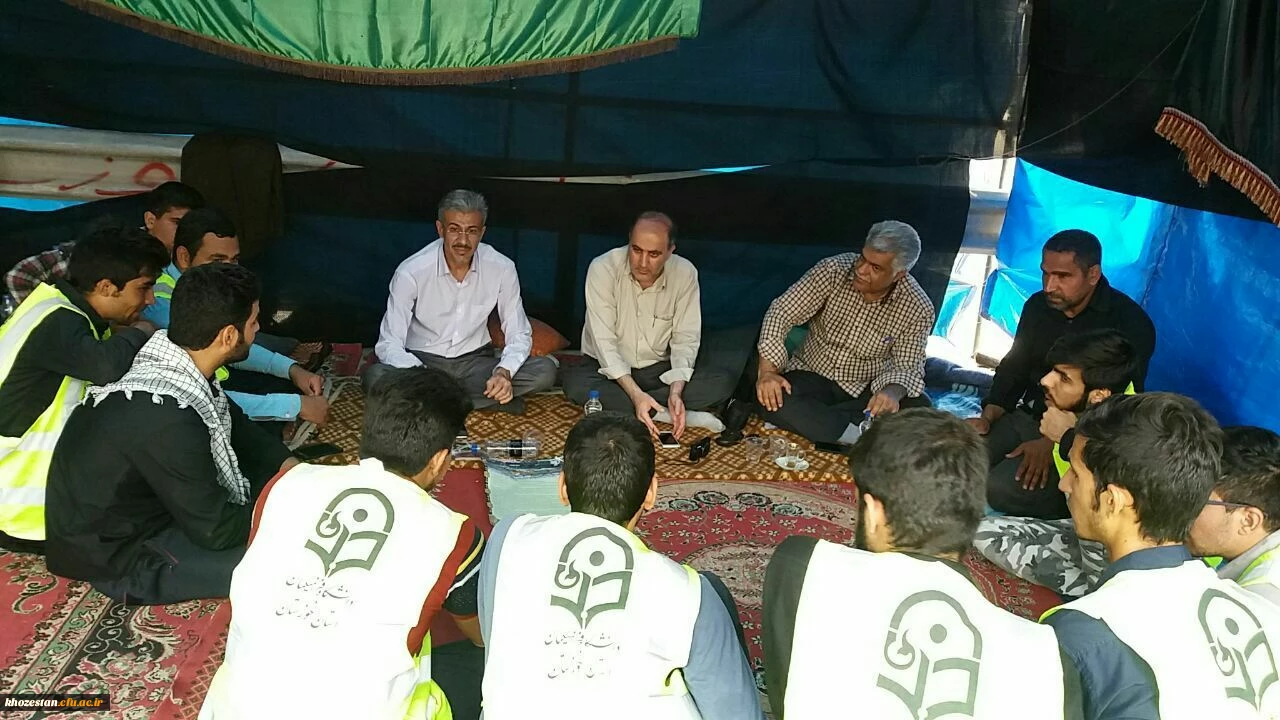 نشست صمیمانه مدیریت استانی و مسئول حراست و سرپرست معاونت اداری مالی پردیس های خوزستان با دانشجویان در موکب زوار الحسین( ع) در مرزچذابه امروز