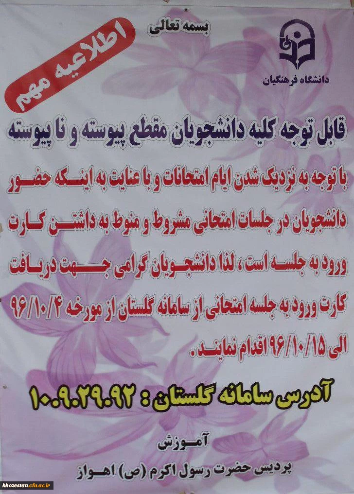 فرآیند برگزاری امتحانات پایان نیم سال 97-96 در پردیس حضرت فاطمه زهرا (ص)  و پردیس حضرت رسول اکرم (ص) استان خوزستان