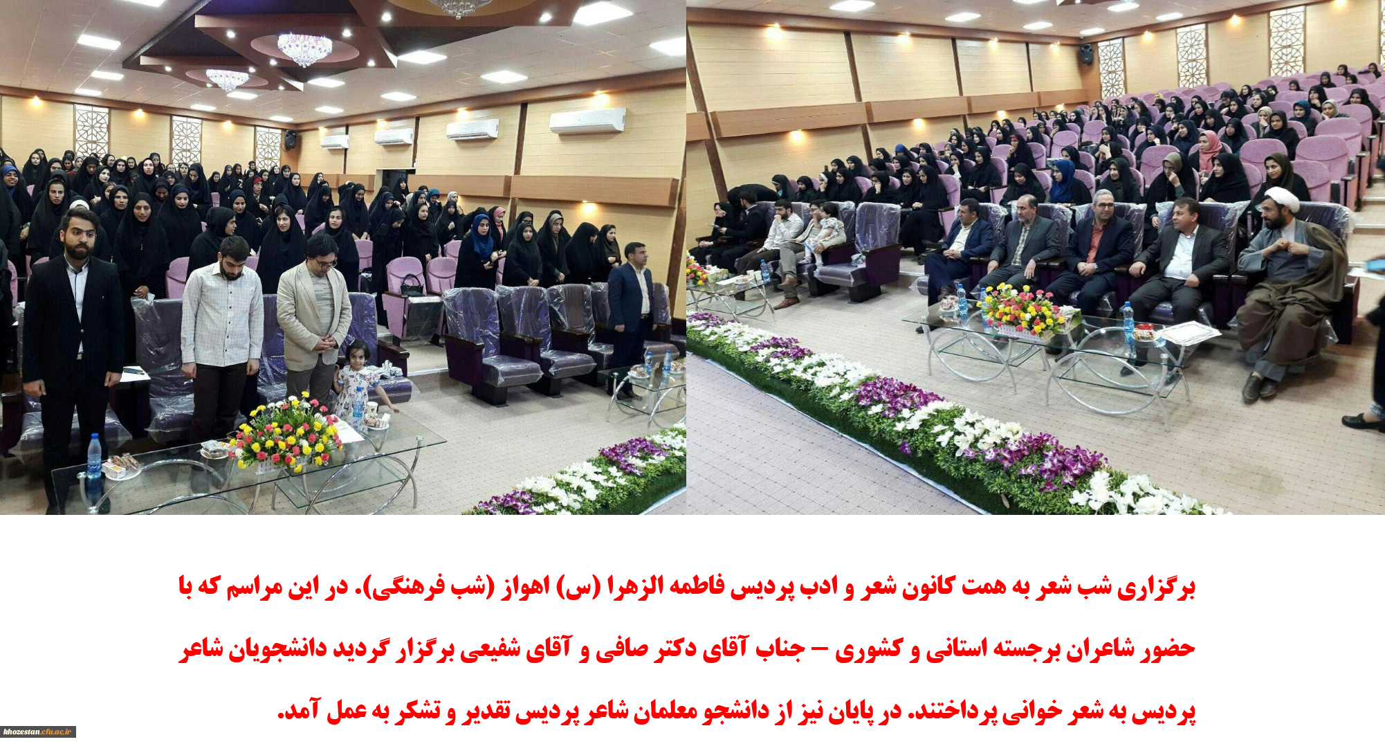 امتیاز دهید : برگزاری شب شعر به همت کانون شعر و ادب پردیس فاطمه الزهرا (س) اهواز (شب فرهنگی) سهشنبه 15 اسفند 1396 ساعت 8:50