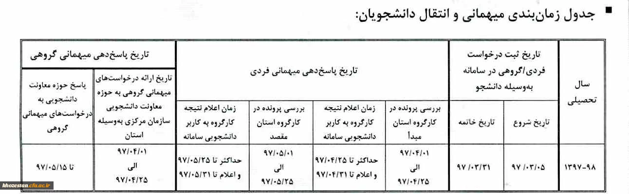 امتیاز دهید : تقویم اجرایی میهمانی و انتقال دانشجویان برای سال تحصیلی 98-1397(کل کشور) چهارشنبه 9 خرداد 1397 ساعت 10:46