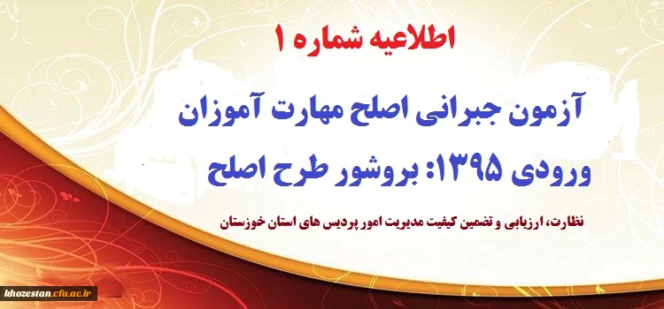 امتیاز دهید : اطلاعیه شماره 1 آزمون جبرانی اصلح مهارت آموزان ورودی 1395: بروشور طرح اصلح شنبه 10 آذر 1397 ساعت 10:53