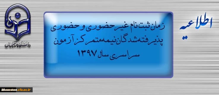 اطلاعیه زمان ثبت نام « غیرحضوری و حضوری» پذیرفته شدگان نیمه متمرکز آزمون سراسری سال 1397