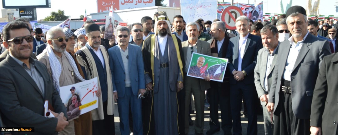 حضور پرشور مدیریت،اساتید،کارکنان،اساتید،کارکنان ، و دانشجو معلمان دانشگاه فرهنگیان استان خوزستان در راهپیمایی یوم الله 22بهمن