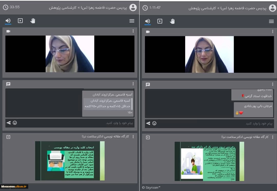 امتیاز دهید : وبینار کارگاه مقاله نویسی با حضور سرکار خانم دکتر سلامت نیا و جمعی از دانشجویان پنجشنبه 20 آذر 1399 ساعت 17:37