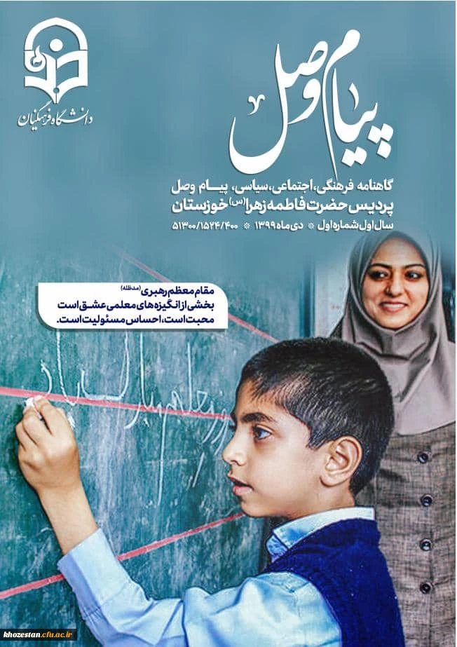 اولین نسخه از نشریه ی دانشجویی *پیام وصل* امور فرهنگی دانشگاه فرهنگیان، پردیس فاطمه الزهرا(س) اهواز منتشر کرد