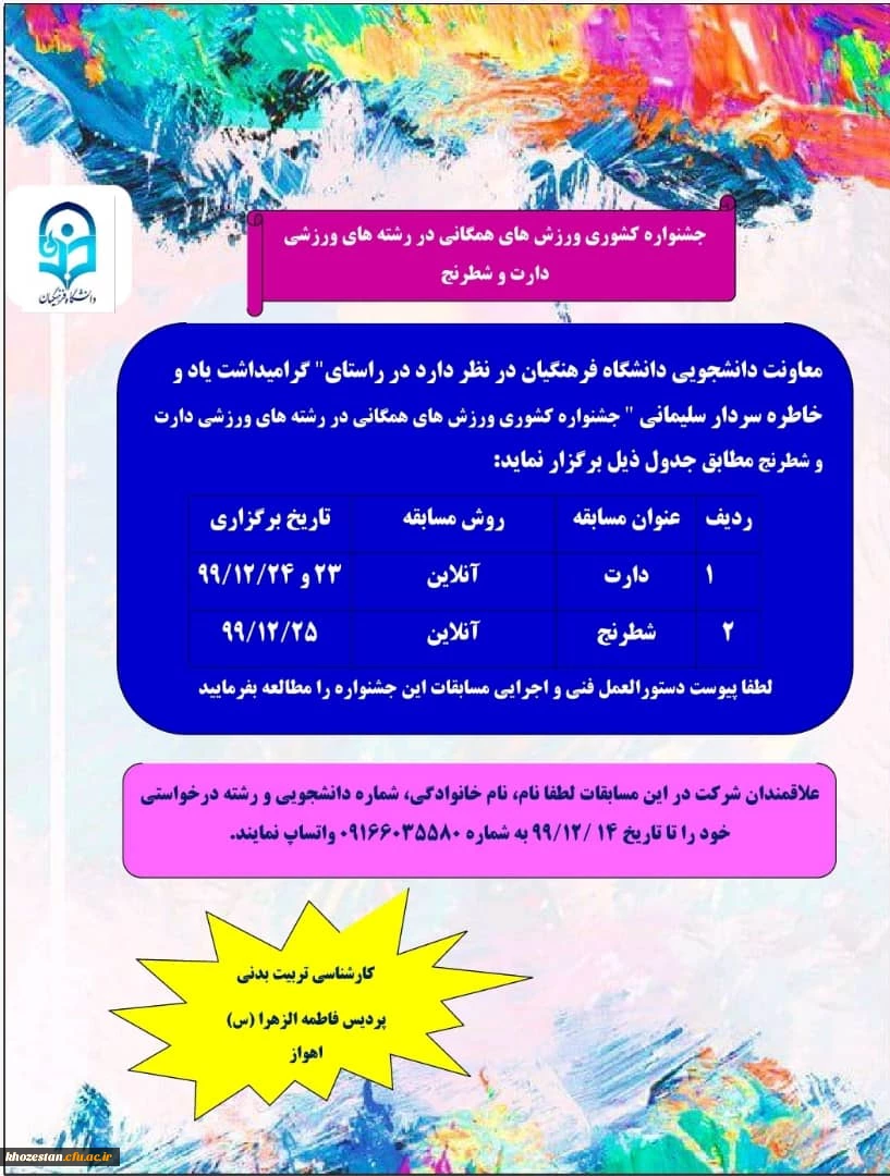 امتیاز دهید : جشنواره کشوری ورزش های همگانی گرامیداشت یاد و خاطره سردار سلیمانی پنجشنبه 14 اسفند 1399 ساعت 10:33