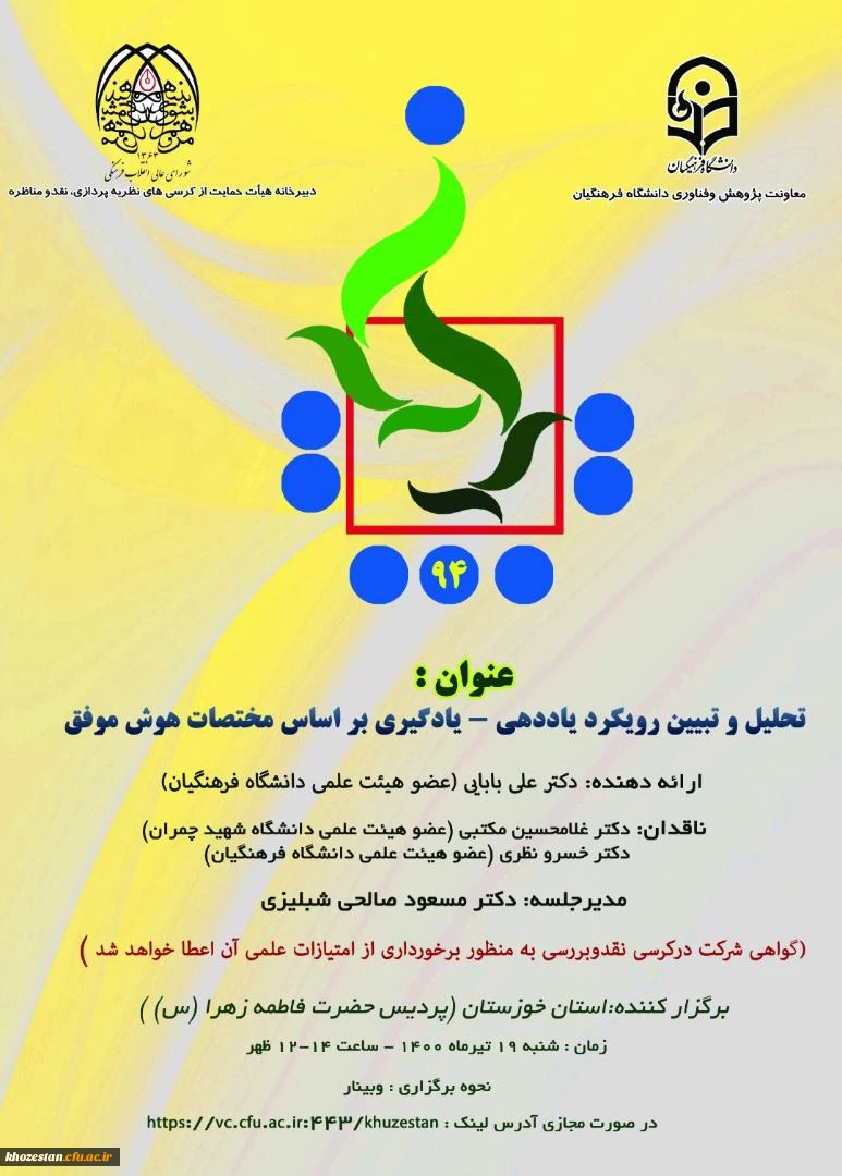 امتیاز دهید : برگزاری دومین کرسی علمی_ ترویجی دانشگاه فرهنگیان استان خوزستان یکشنبه 20 تیر 1400 ساعت 15:25