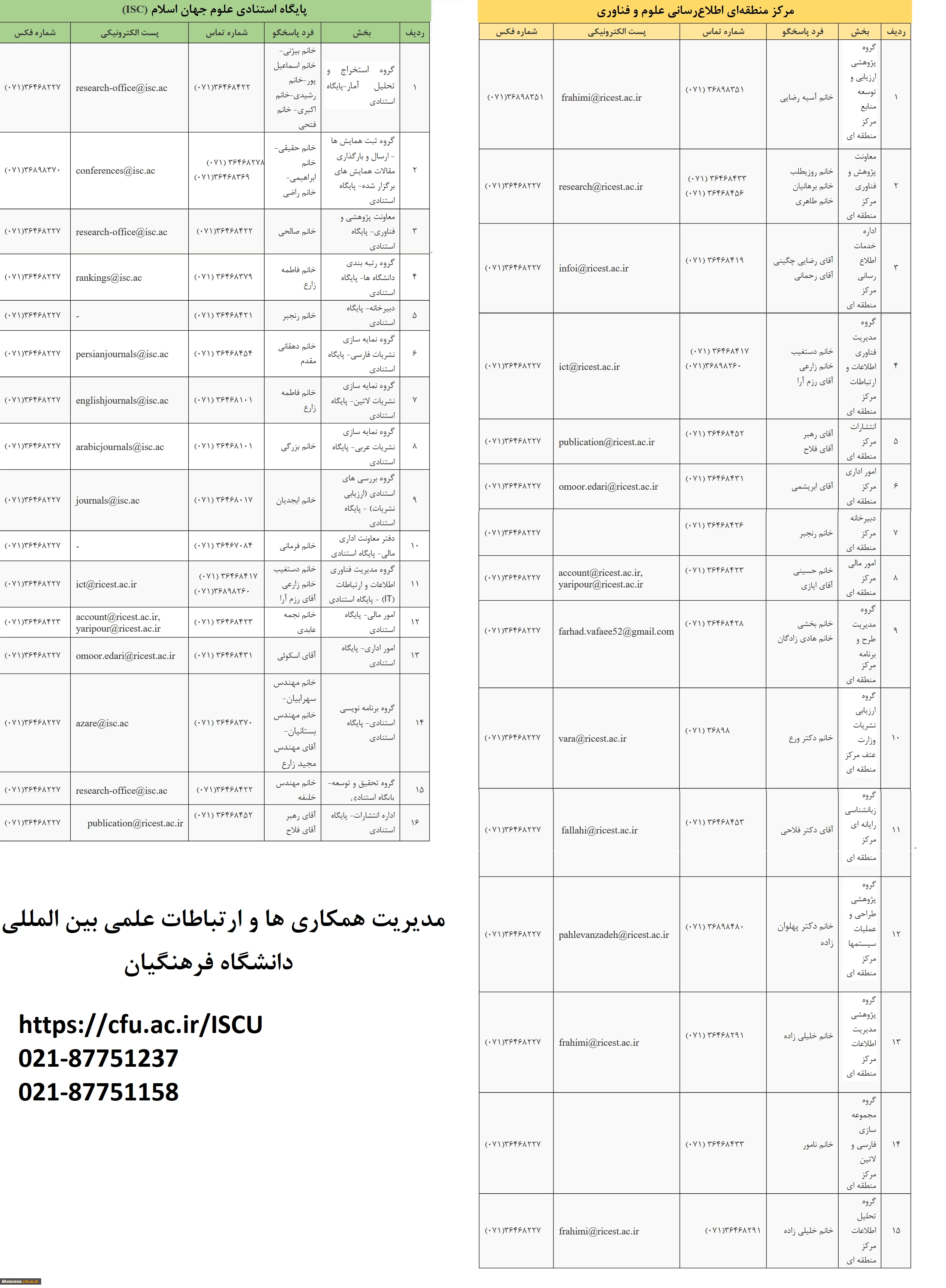 اطلاعات تماس پایگاه استنادی علوم جهان اسلامIsc و مرکز منطقه ای اطلاع رسانی علوم و فناوری
