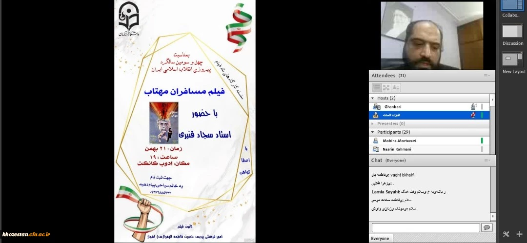 امتیاز دهید : کارگاه نقد فیلم بمناسبت دهه فجر در پردیس حضرت فاطمه الزهرا(س) اهواز پنجشنبه 21 بهمن 1400 ساعت 20:32