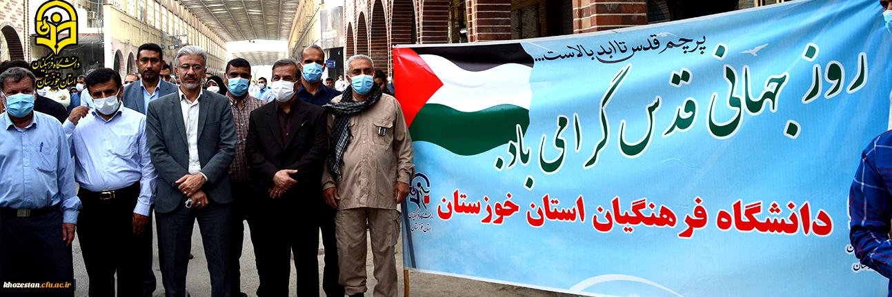 حضور حماسی وانقلابی مدیر دانشگاه فرهنگیان استان خوزستان؛ سرپرست و جمعی از پرسنل پردیس رسول اکرم(ص) و مدیریت استانی در راهپیمایی روز قدس در اهواز 2