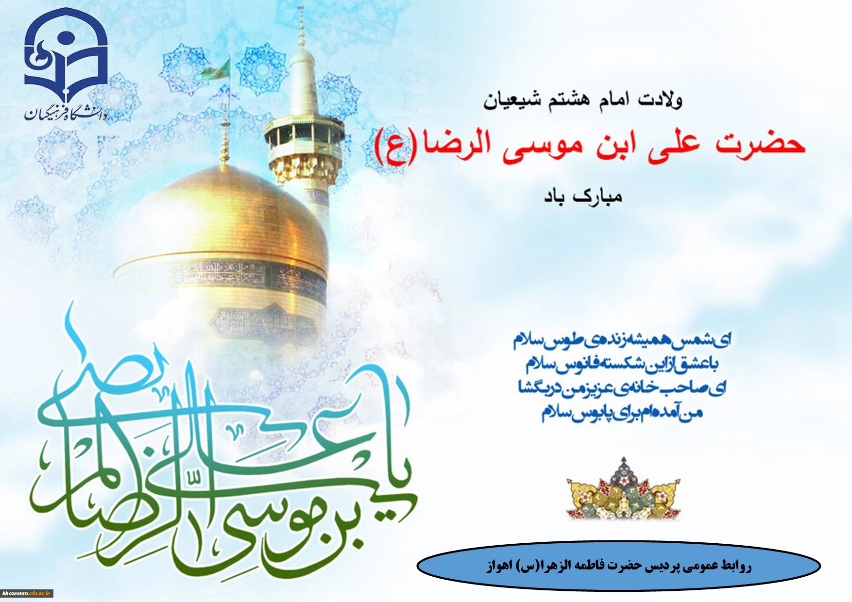 امتیاز دهید : ولادت امام هشتم شیعیان حضرت علی ابن موسی الرضا(ع) مبارک باد شنبه 21 خرداد 1401 ساعت 12:40