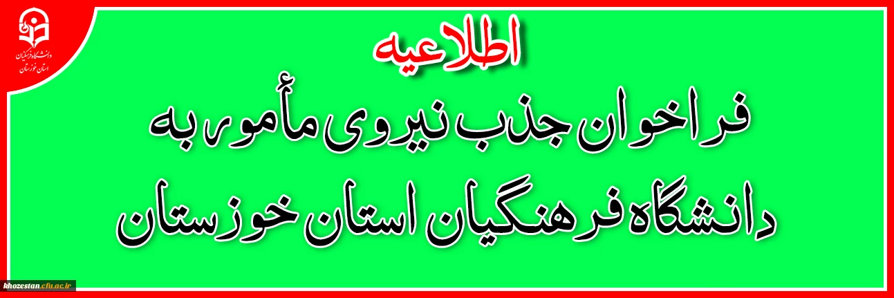 امتیاز دهید : اطلاعیه فراخوان جذب نیروی مأمور به دانشگاه فرهنگیان استان خوزستان 2 یکشنبه 5 تیر 1401 ساعت 9:19