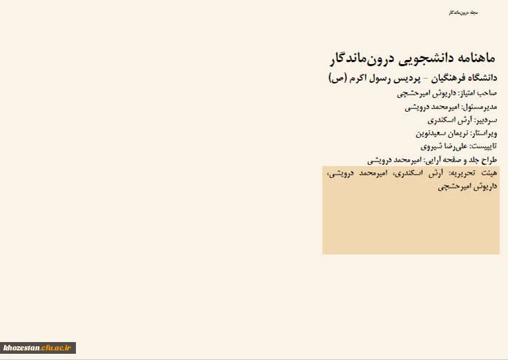 اولین شماره ی نشریه ی دانشجویی  «درون ماندگار/ در امتداد گشودگی» منتشر شد. 2