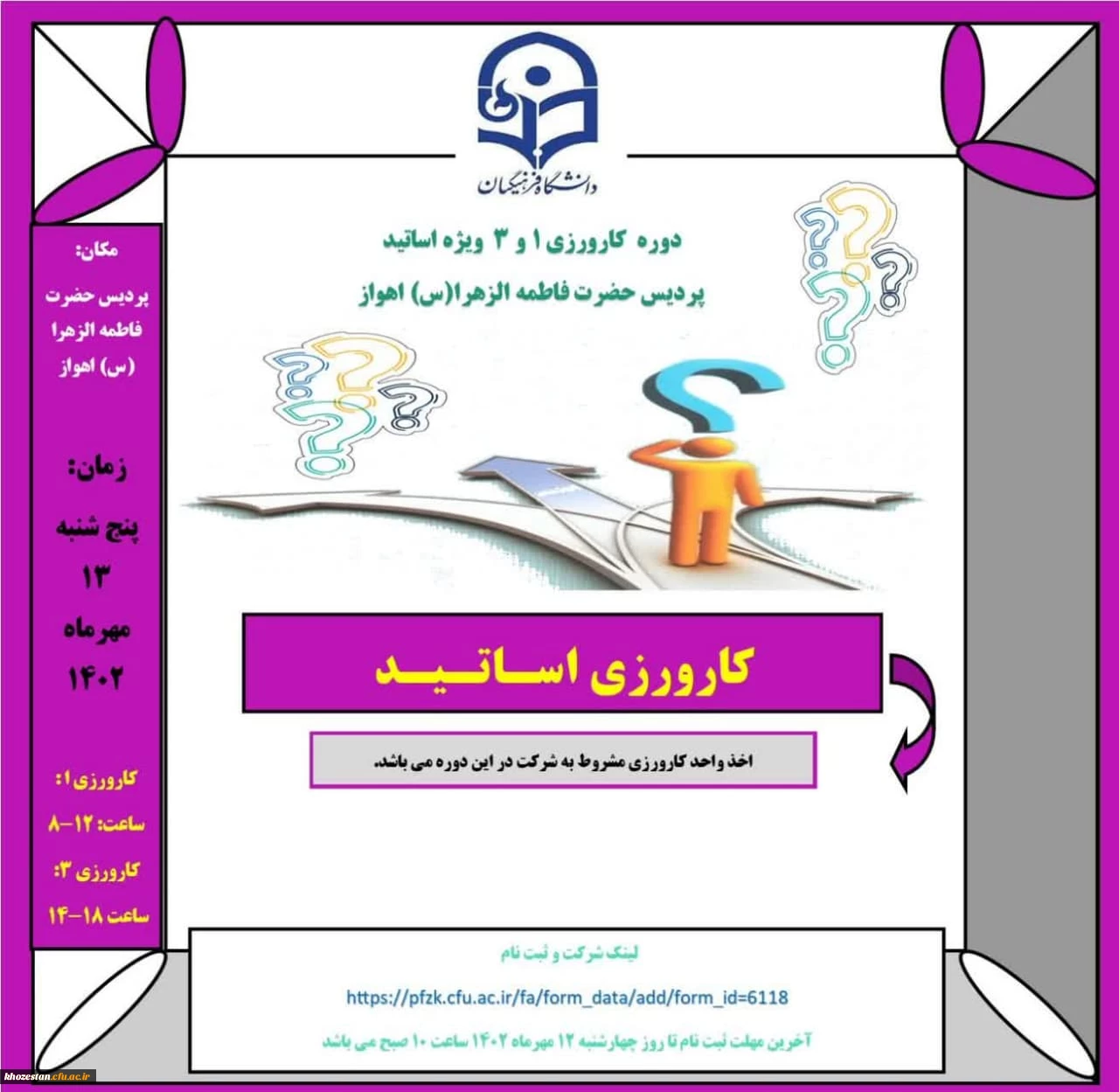 امتیاز دهید : دوره کارورزی ۱ و ۳ ویژه اساتید پردیس حضرت فاطمه الزهرا(س) اهواز دوشنبه 10 مهر 1402 ساعت 14:22