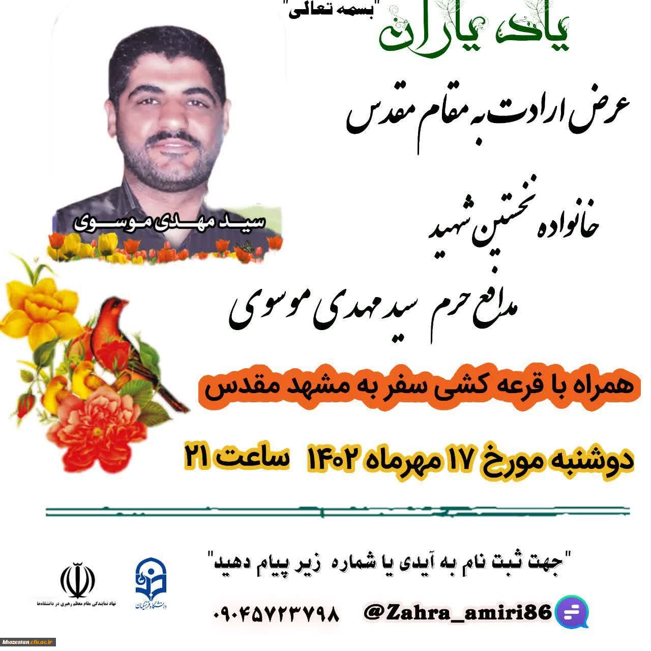 امتیاز دهید : مراسم دیدار با خانواده معزز اولین شهید مدافع حرم، سید مهدی موسوی یکشنبه 16 مهر 1402 ساعت 8:13