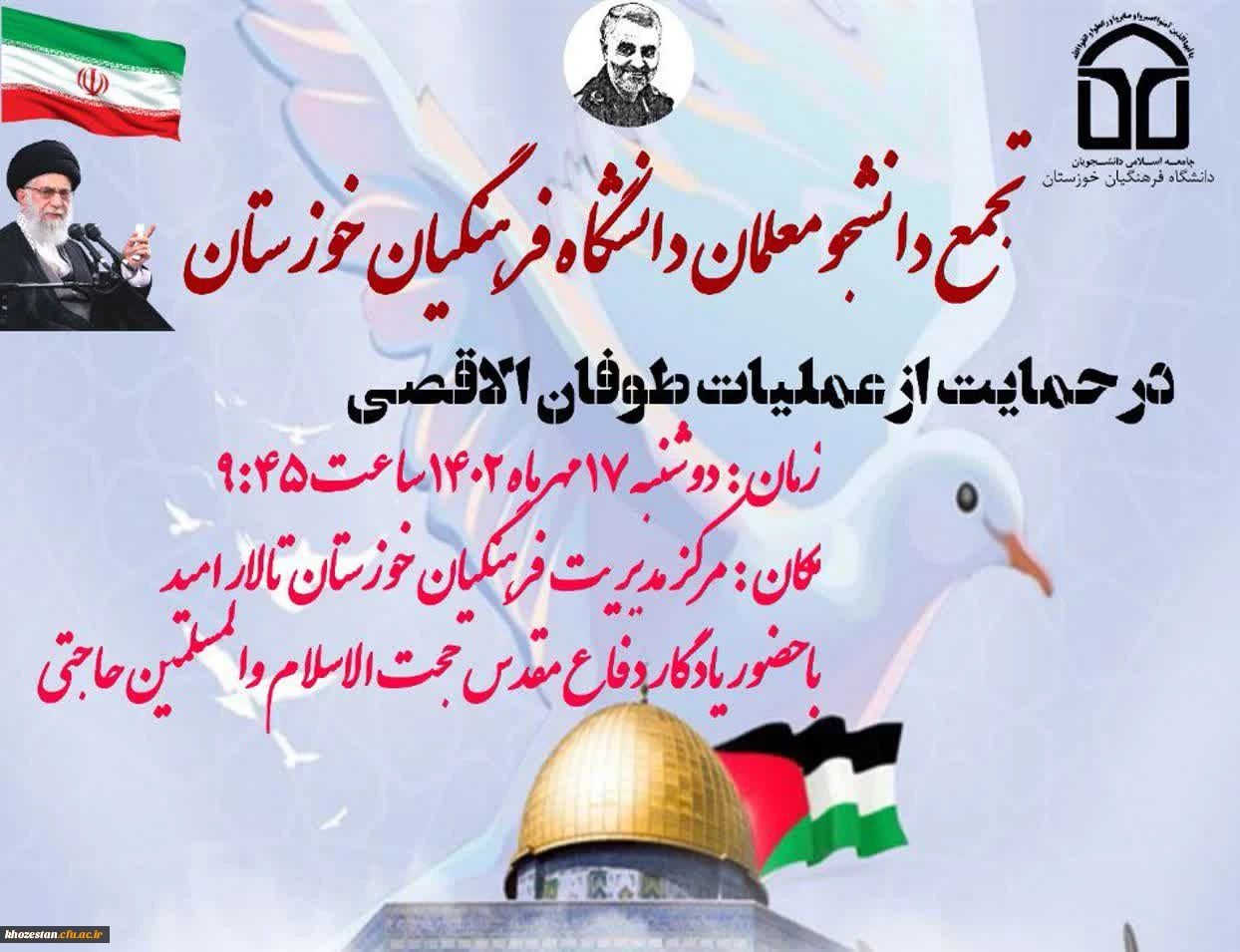 تجمع دانشجومعلمان دانشگاه فرهنگیان خوزستان در حمایت از موشک باران رژیم غاصب صهیونیستی و عملیات طوفان الاقصی