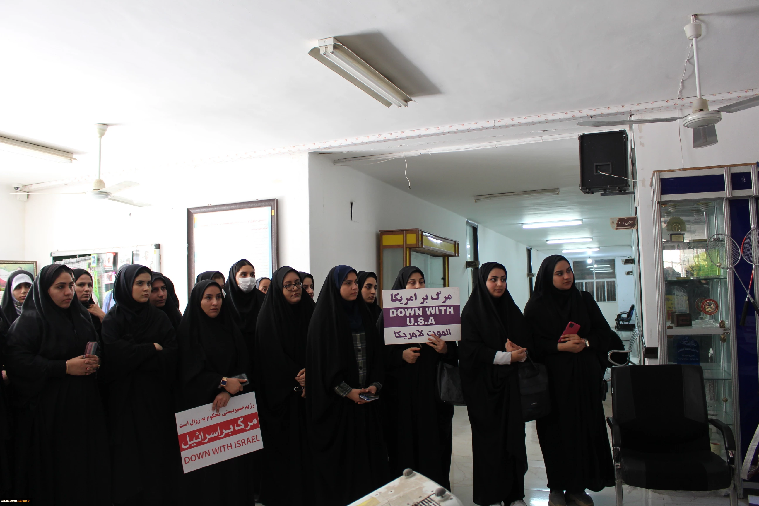 تجمع اعتراض آمیز فرهیختگان دانشگاه فرهنگیان پردیس حضرت فاطمه الزهرا(س) اهواز در دفاع از مردم مظلوم غزه