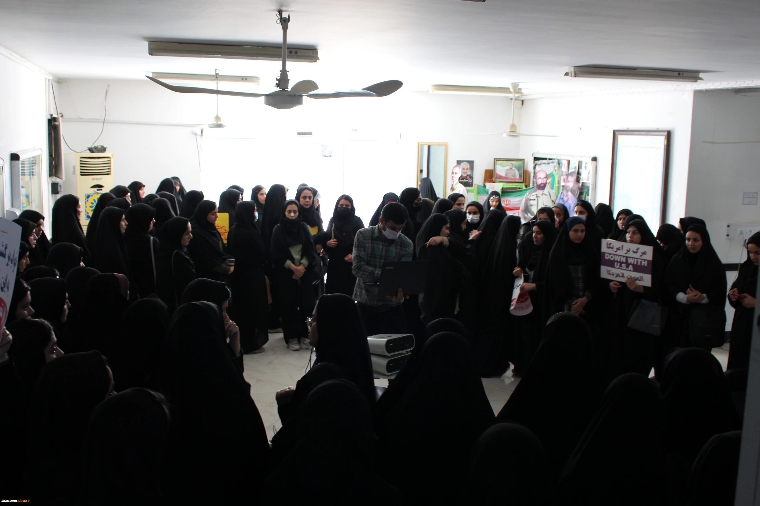 تجمع اعتراض آمیز فرهیختگان دانشگاه فرهنگیان پردیس حضرت فاطمه الزهرا(س) اهواز در دفاع از مردم مظلوم غزه