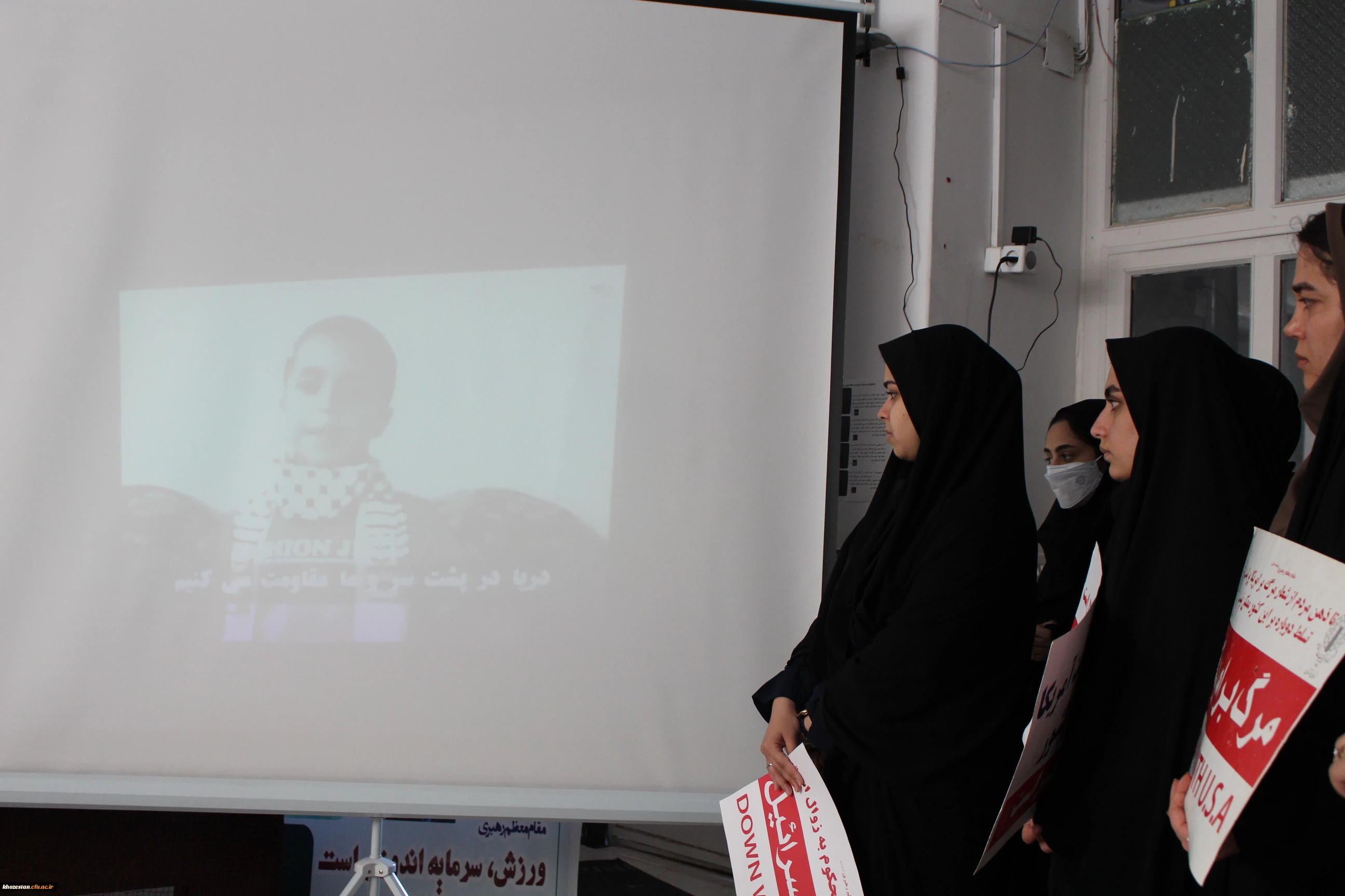 تجمع اعتراض آمیز فرهیختگان دانشگاه فرهنگیان پردیس حضرت فاطمه الزهرا(س) اهواز در دفاع از مردم مظلوم غزه