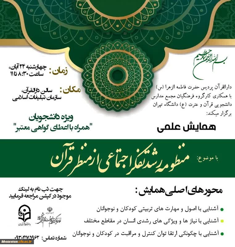 امتیاز دهید : برگزاری همایش علمی با موضوع منظومه رشد تفکر اجتماعی از منظر قرآن شنبه 13 آبان 1402 ساعت 9:12