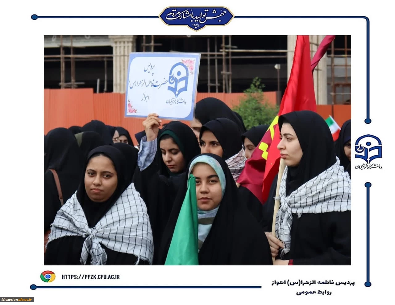 حضور کارکنان و دانشجو معلمان پردیس حضرت فاطمه الزهرا(س) اهواز در راهپیمایی ۱۳ آبان