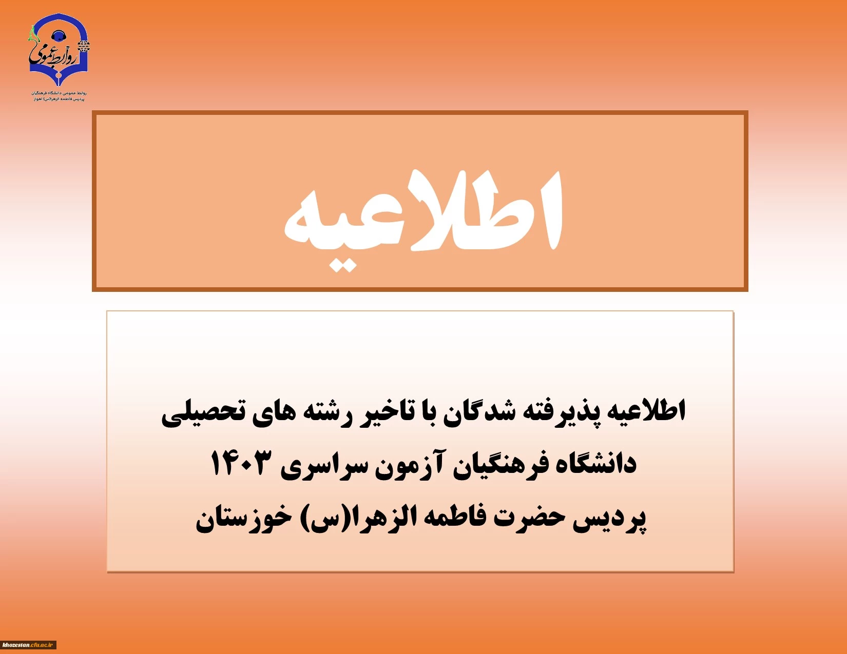 اطلاعیه پذیرفته شدگان با تاخیر رشته های تحصیلی دانشگاه فرهنگیان آزمون سراسری 1403 پردیس حضرت فاطمه الزهرا(س) خوزستان