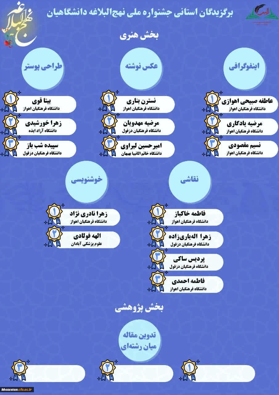 دانشجویان دانشگاه فرهنگیان اهواز در جشنواره ملی نهج البلاغه درخشیدند.